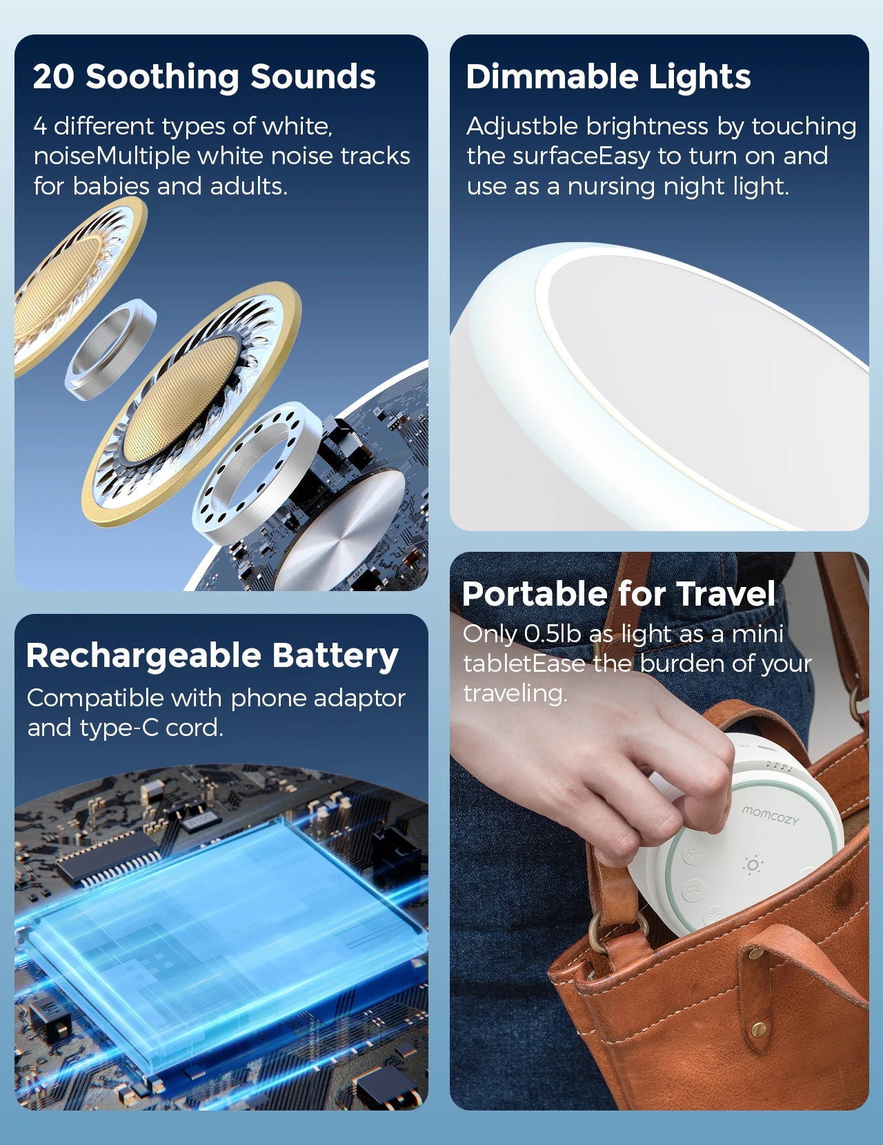 Momcozy Sound Machine for Baby, Portable Rechargeable, 20 Sleep Sounds White Noise Machine with Nursery Night Light, Travel