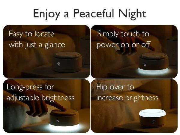 【Adjustable Touch Lamp】This lamp comes with a main switch that doubles as a light source, making it easy for you to find your white noise at night. Simply touch the top to turn on the light, and hold down to adjust the brightness smoothly. With two reversible sides, flipping the lamp upwards maximizes the brightness, catering to your needs for different light settings.