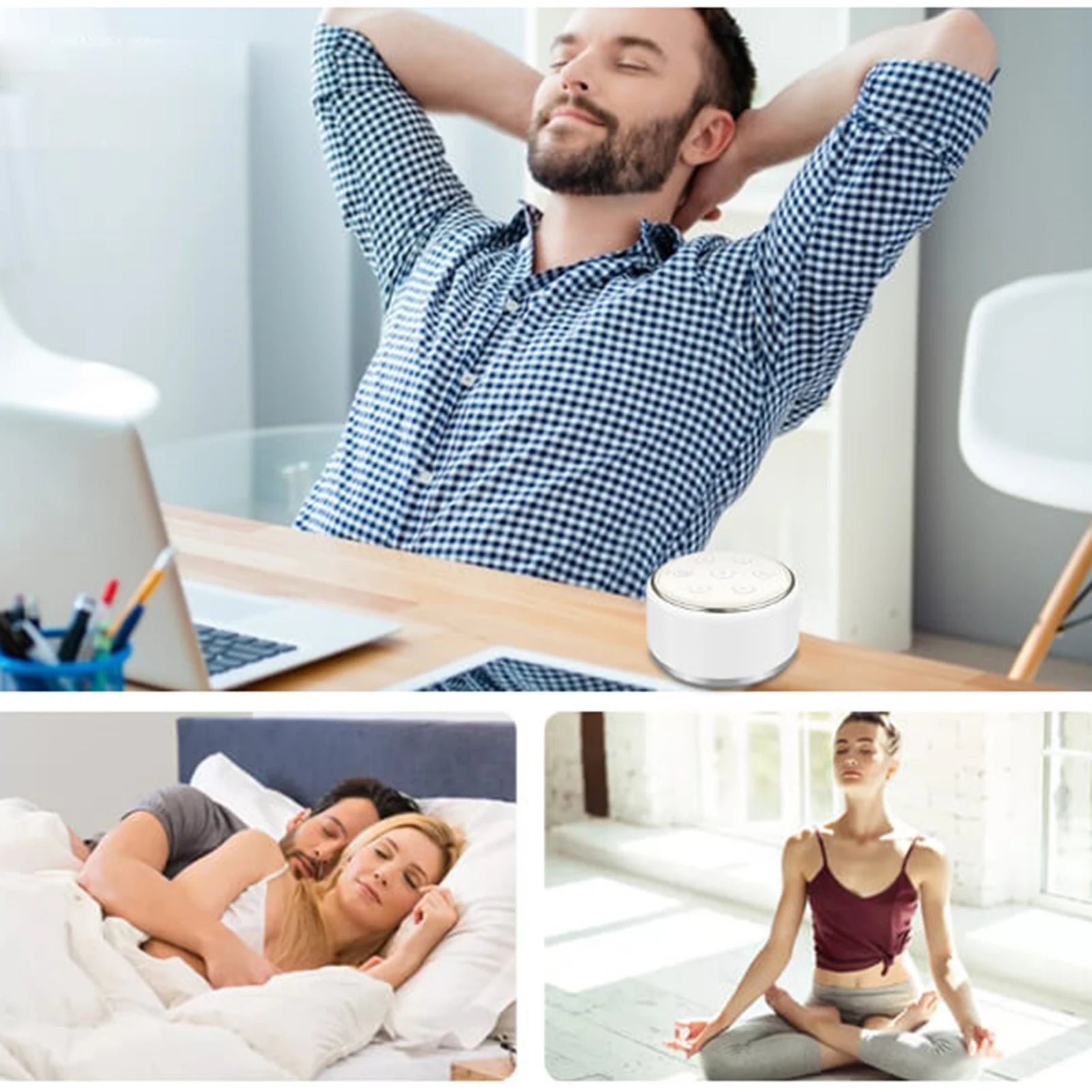 【Portable Sleep Sound Machine】Compact and lightweight sleep sound machine can be placed on bedside table or office desk. You can also take it with you when go out for camping, traveling, etc. Also a good decoration for home or office.