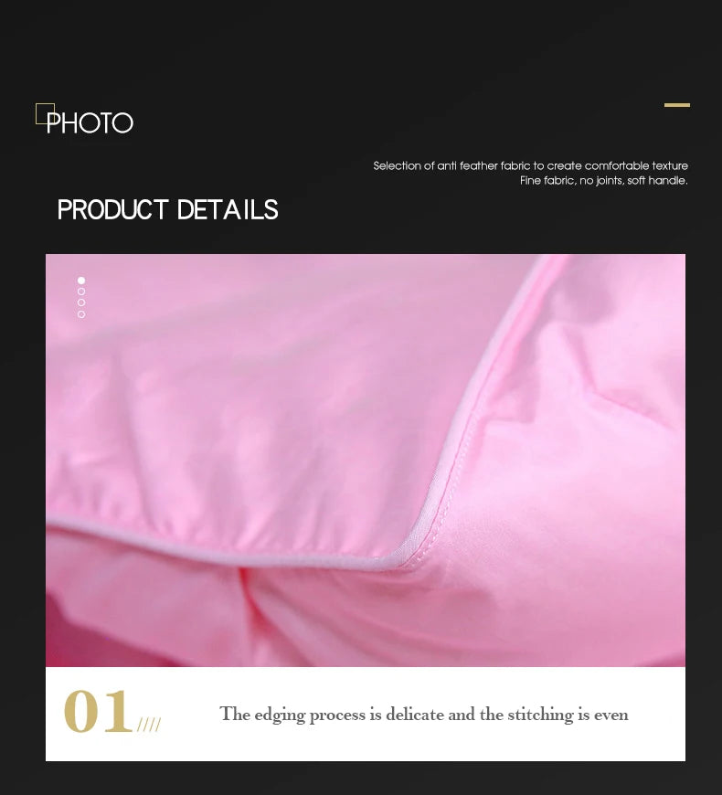 ●We strictly select responsibly sourced fluffy, odorless feathers and down fillings. High-quality feather and down ingredients make the duvet soft and light, and the filling is made of 50% goose down, 50% goose down fiber, which brings great loft and warmth.