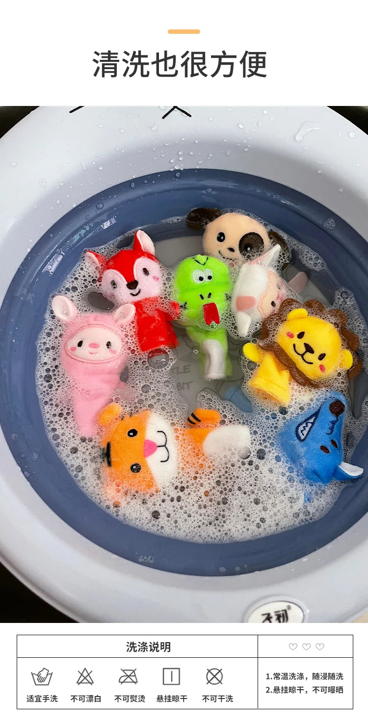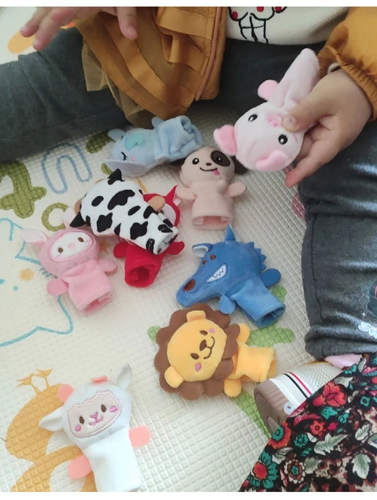 Hand puppet, finger puppet toy, is one of the toys for babies to grow up with.Animal finger dolls have cute shapes and bright color combinations, which can stimulate the visual development of babies. At the same time, recognizing animals can attract babies, increase the fun of toys, and cultivate their hands-on ability.The head of the hand puppet finger doll is filled with PP cotton, which is three-dimensional and cute. The body is made of ultra soft fabric, which is soft and comfortable. The fingers can swing flexibly. After investigation, the size designer of the hand puppet has determined that it is suitable for parents to insert their hands into the toy. Parents can insert their palms into the toy and then swing continuously in front of the baby. The baby's eyes will keep chasing, promoting their visual development. Parents can interact and play games with the baby, tell stories with the baby, and this toy also has exquisite embroidery technology. When the baby is about 6 months old, she can play and play on her own. After the age of one, children can tell stories for interactive entertainmentSuggest parents to buy 2 sets so that they can better interact with their babies!