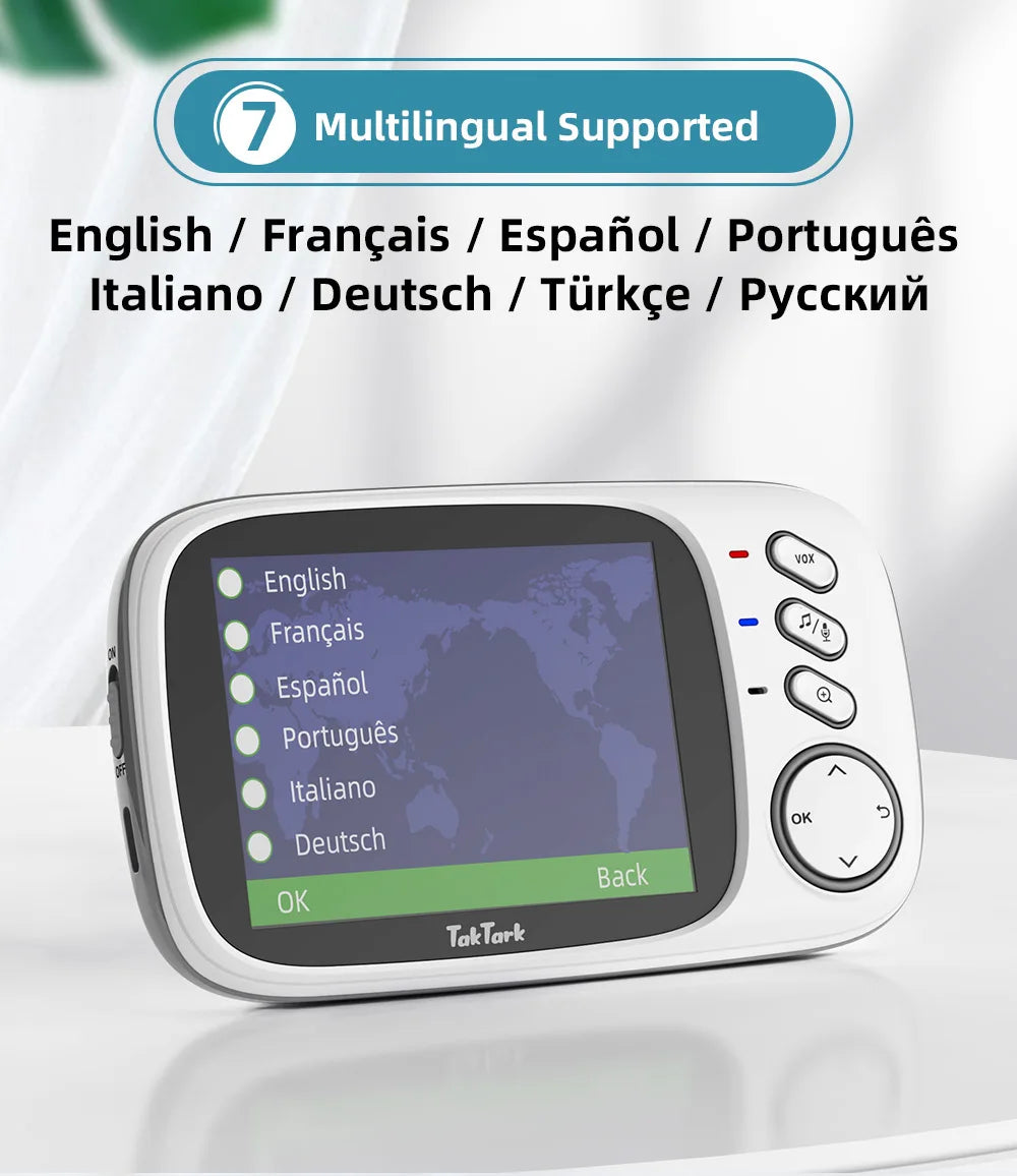 TakTark 3.2 Inch Wireless Video Baby Monitor With Lullabies Auto Night Vision Two Way Intercom Temperature Monitoring Babysitter