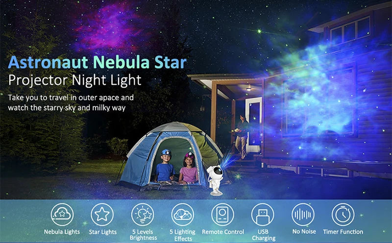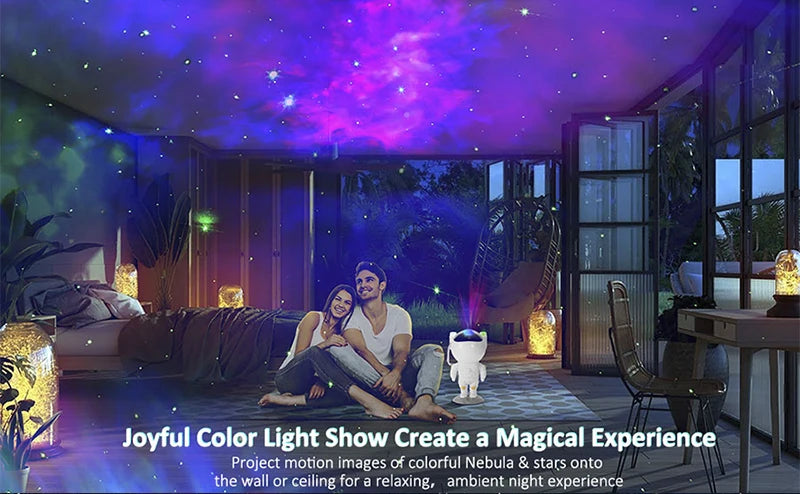 【Astronaut Star Nebula Projector】: The colorful and unpredictable nebula comes in a variety of color combinations and is decorated with flashing star lights, which can be switched by remote control or buttons. The high-definition starlight galaxy is projected onto the wall and ceiling, making you feel like you are in the vast galaxy, creating a romantic atmosphere and enjoying your leisure time.